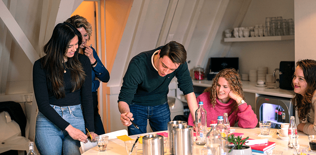 Voor Fenna is het vanzelfsprekend om met studenten te werken. Naast dat ze stagiairs inzet in Fendorse, is ze ook betrokken bij de Hogeschool van Rotterdam als externe examinator van afstudeertrajecten. Als deskundige uit het bedrijfsleven beoordeelt ze of studenten klaar zijn voor de arbeidsmarkt. Daarnaast lopen er geregeld stagiairs mee in de bedrijfsvoering van Fendorse. Fenna: ''Soms blijft een stagiair na zijn/haar studie nog een tijdje hangen. Dat vind ik altijd heel leuk. Jonge mensen zijn toch wat sneller van begrip en zien verandering als een uitdaging. Dat werkt erg prettig.''